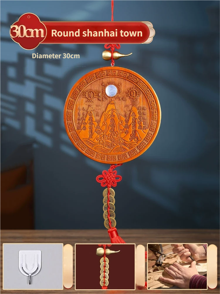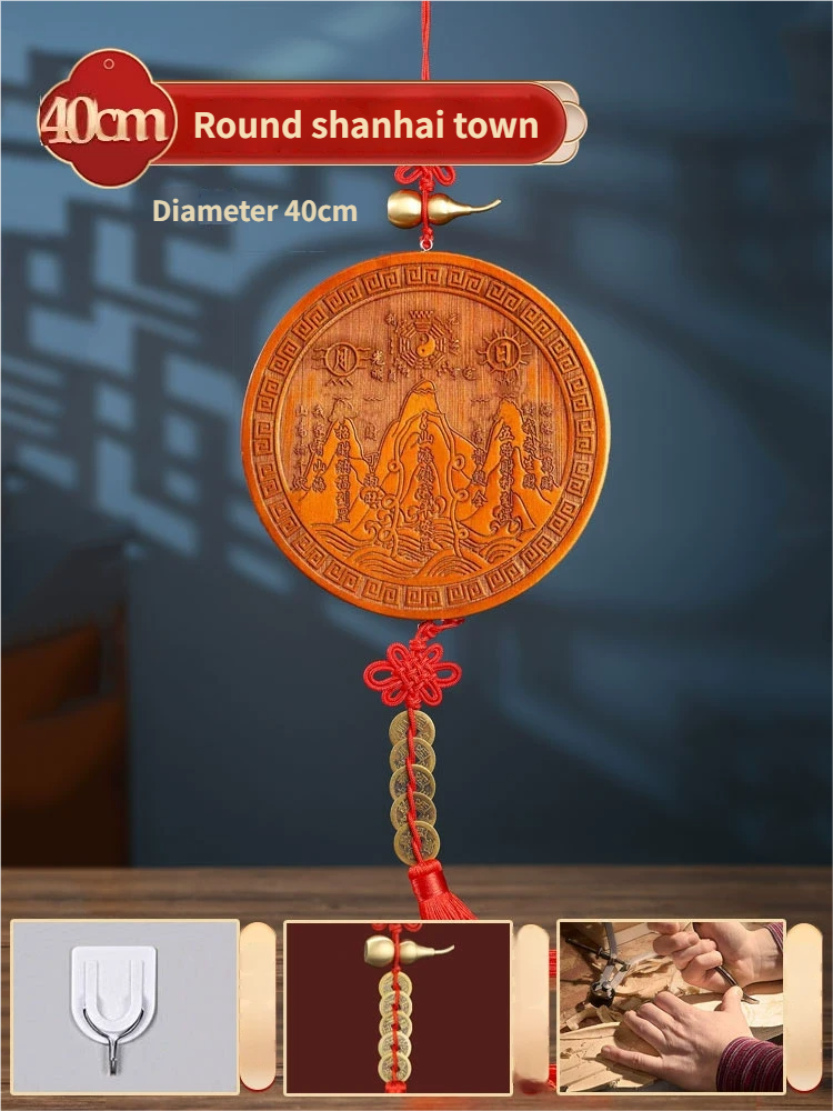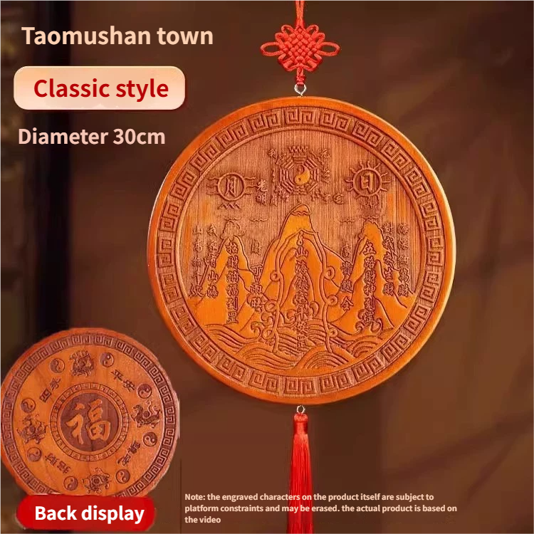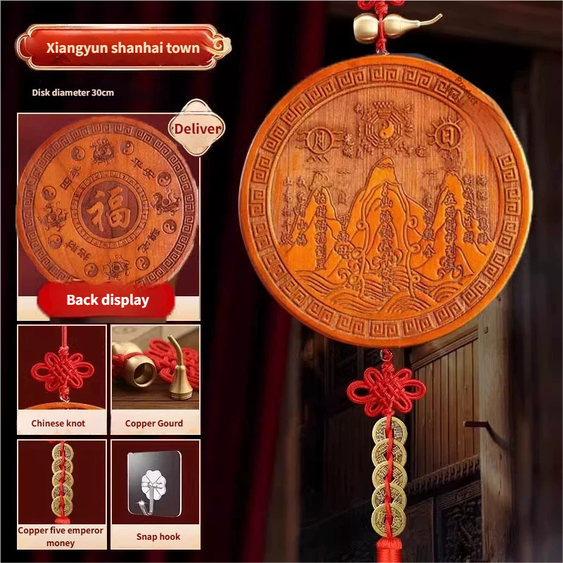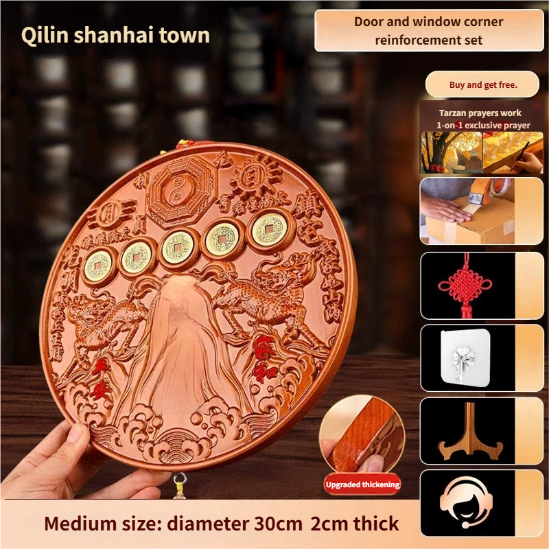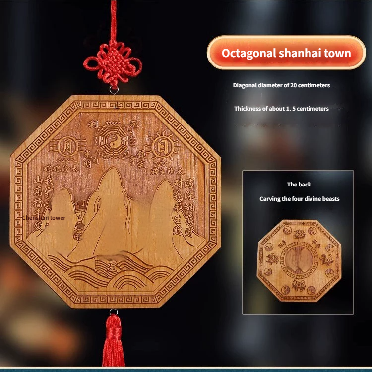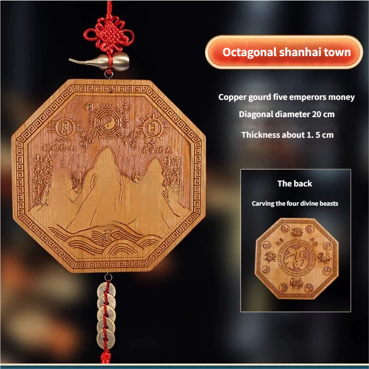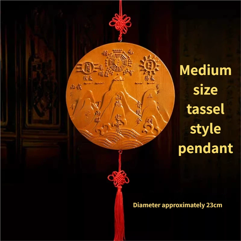 Pure Peach Wood Mountain Sea Mirror Bagua Qilin Protection Ornament