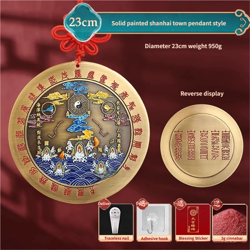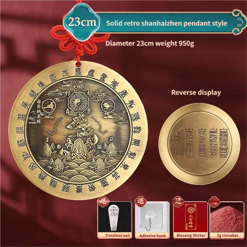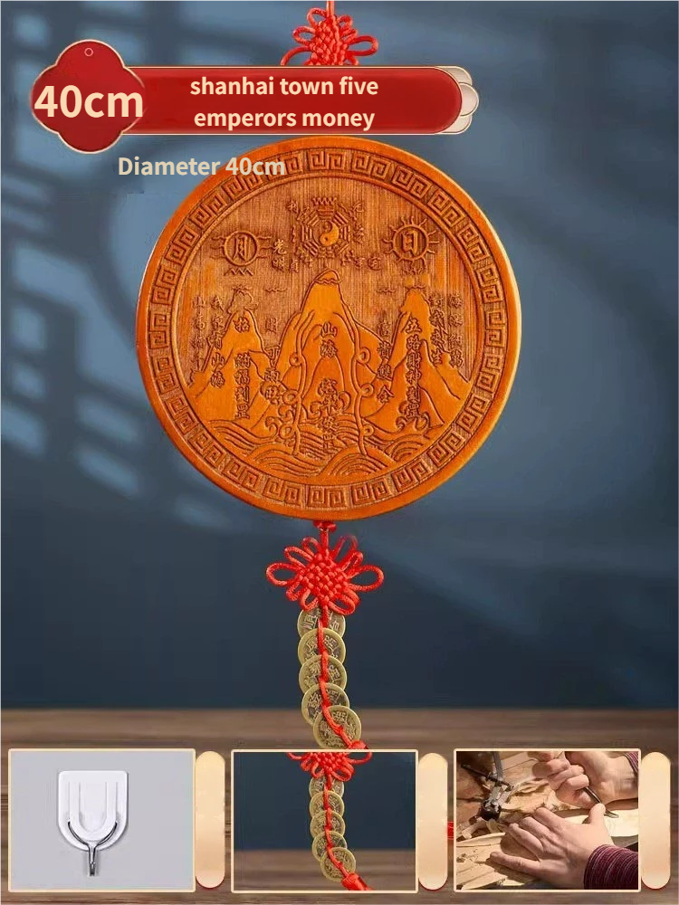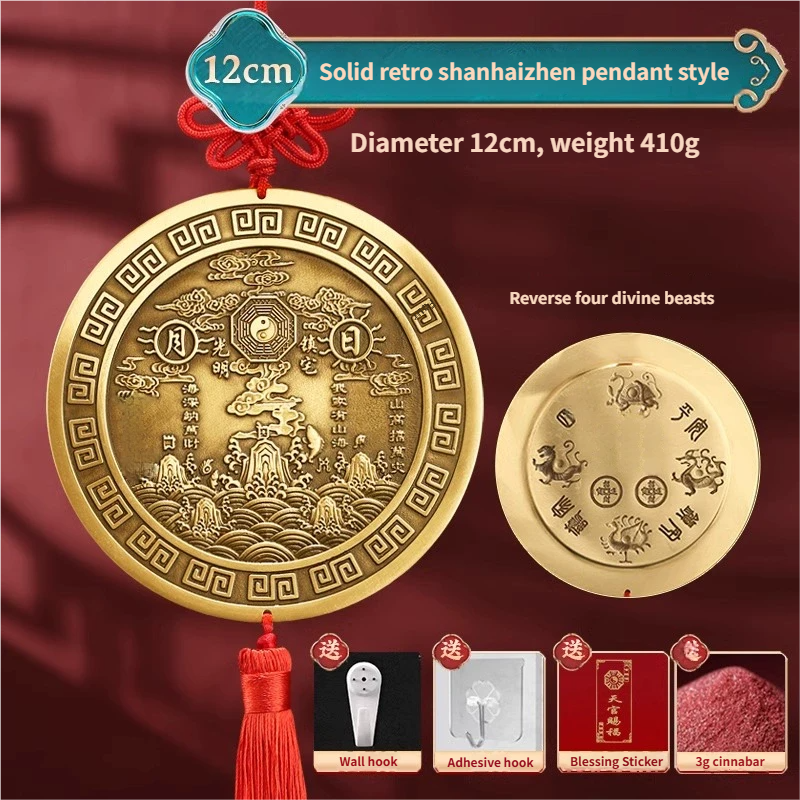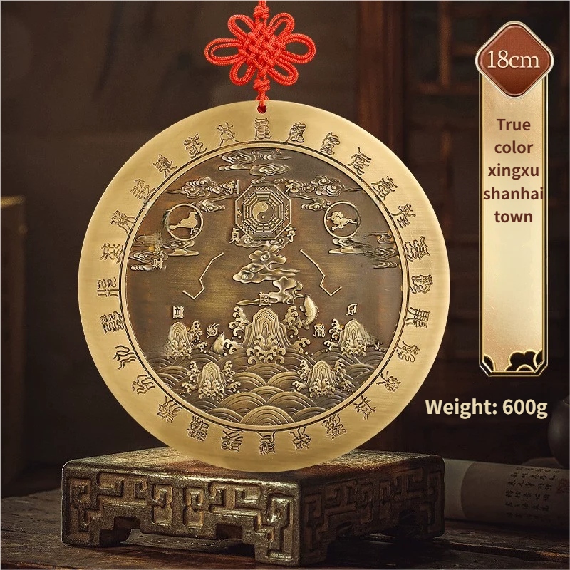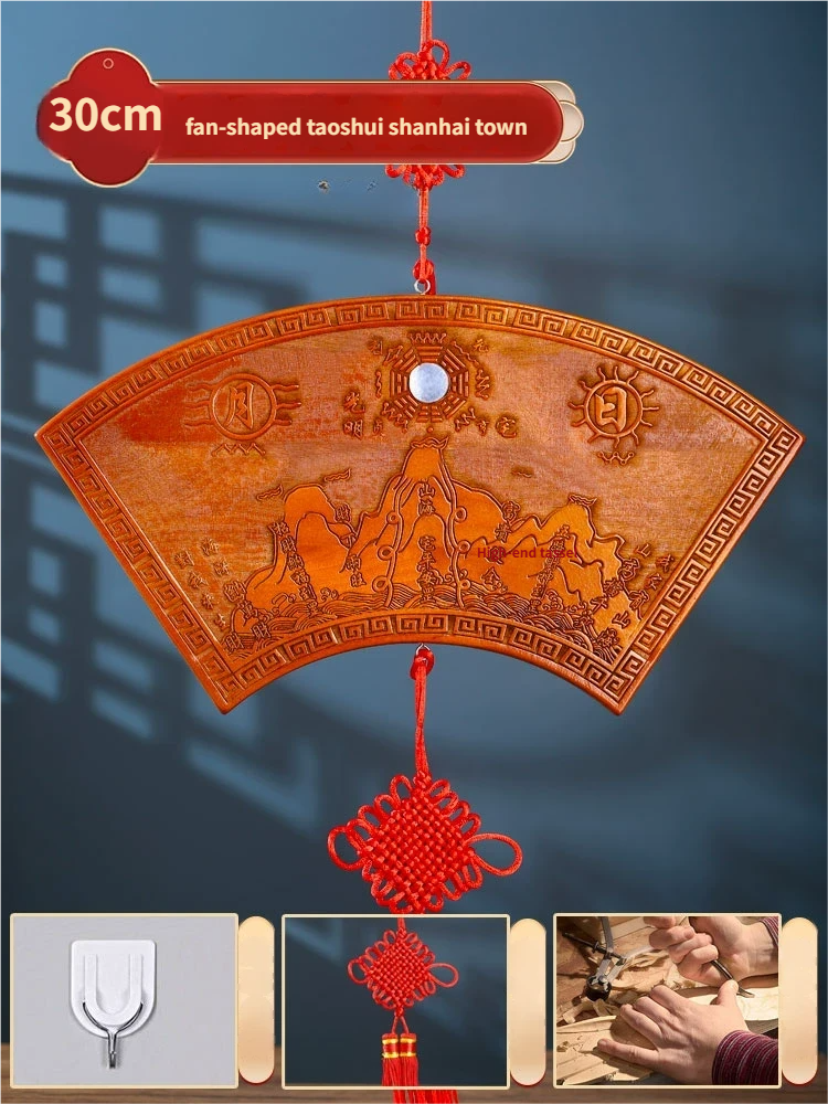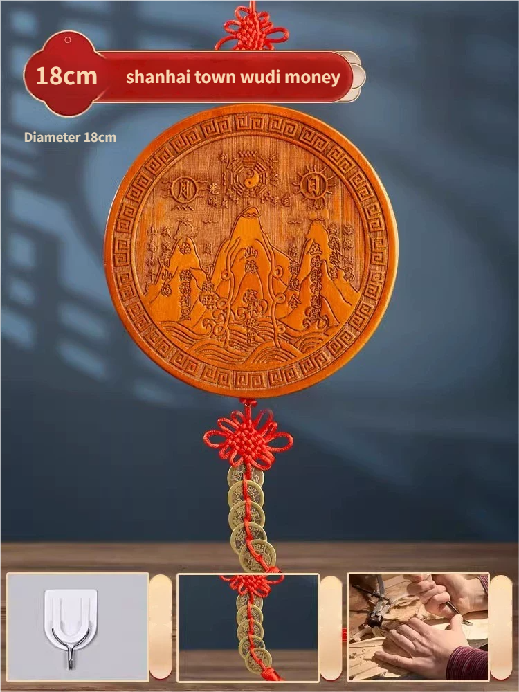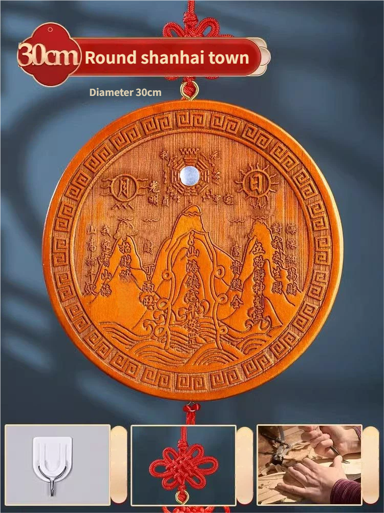 Pure Peach Wood Mountain Sea Mirror Bagua Qilin Protection Ornament