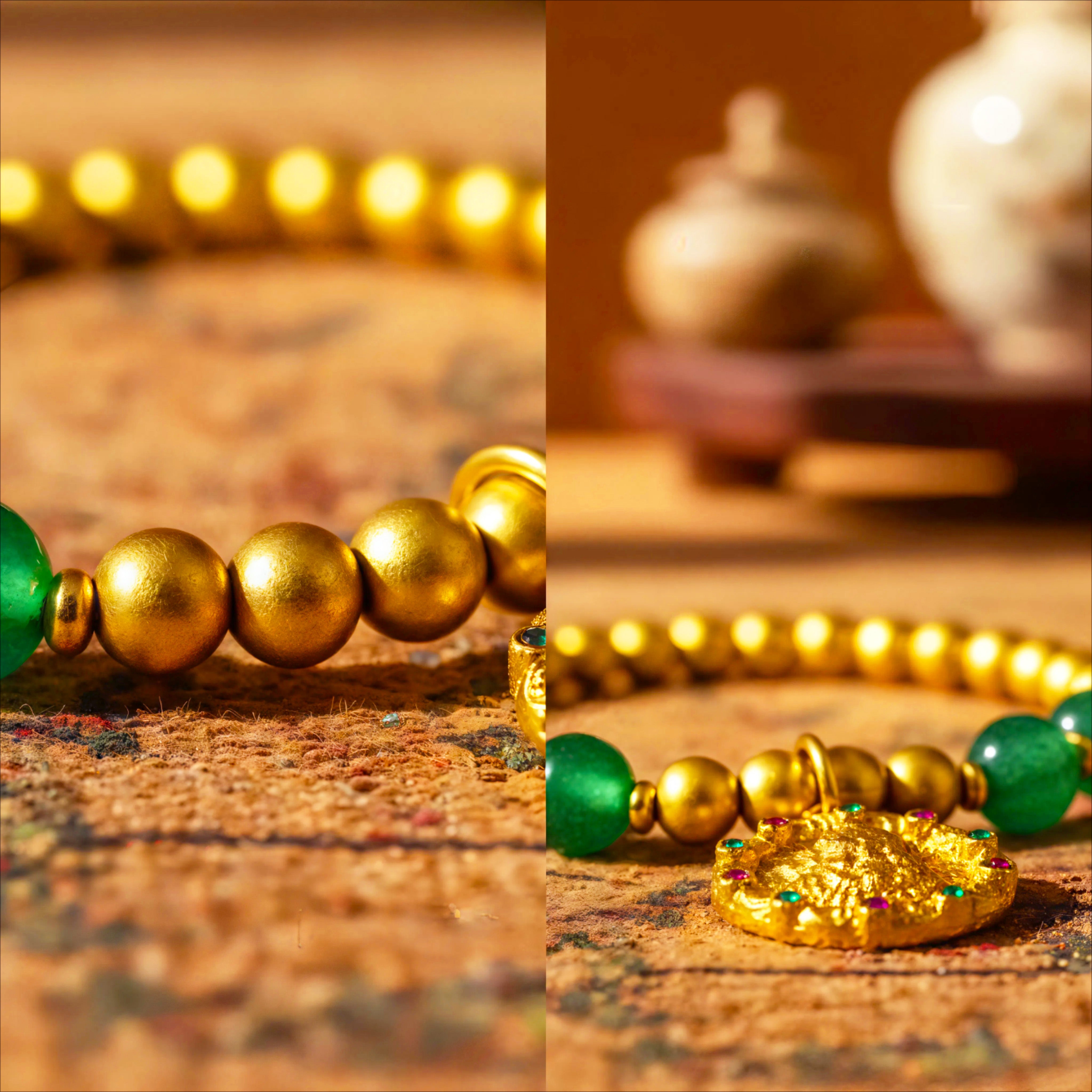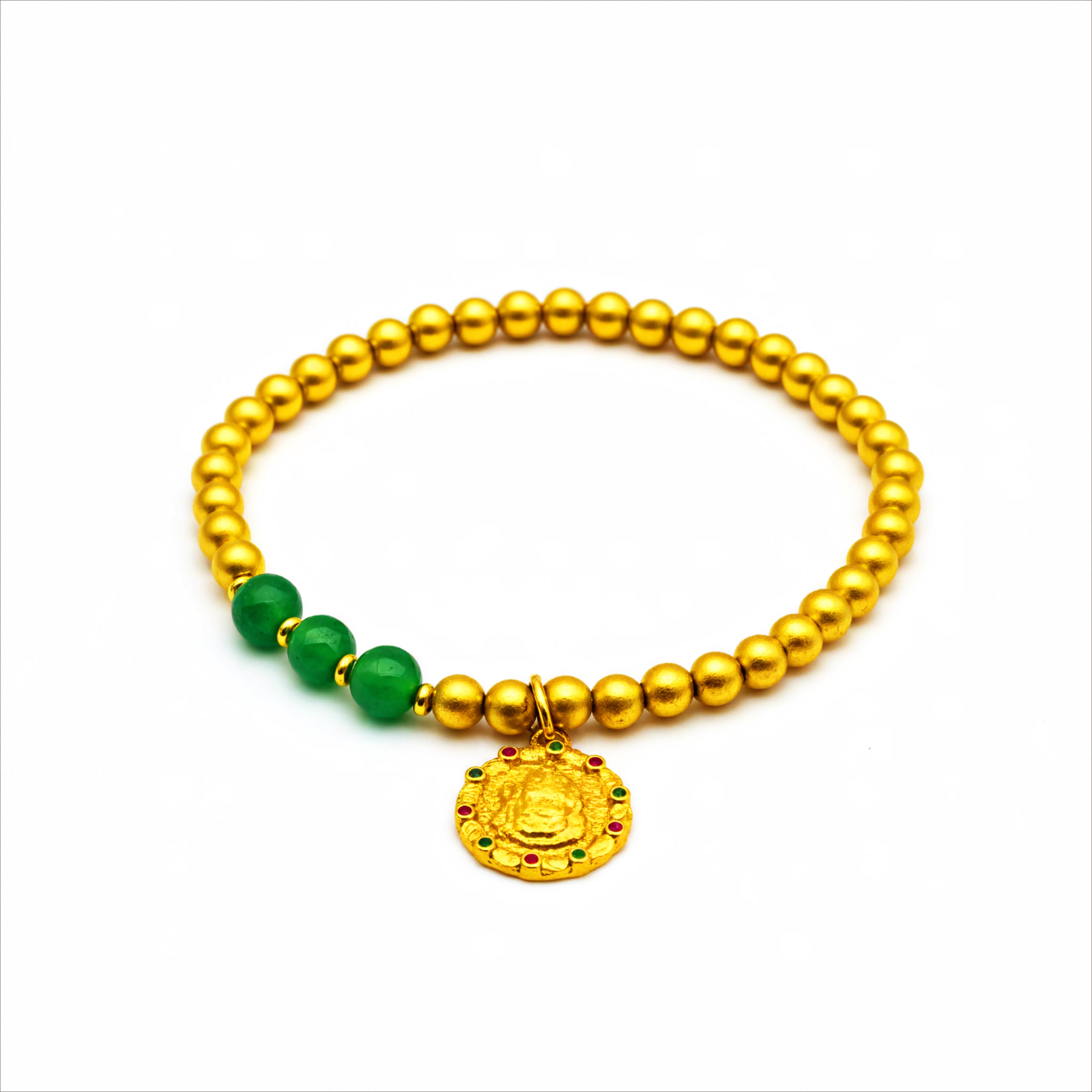 SkyPalace Golden Beads & Green Agate Natural Crystal Bracelet