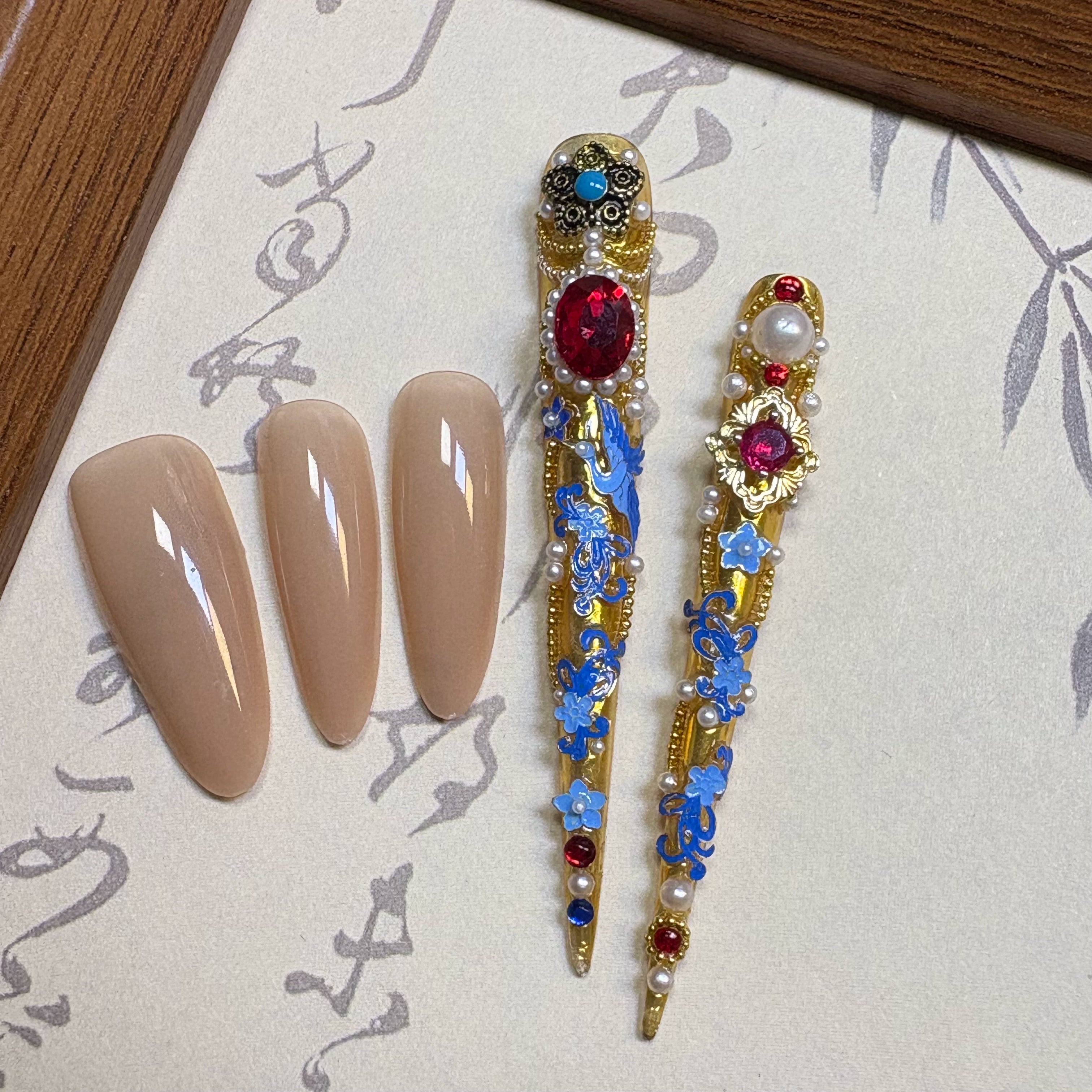 Crane Dance Royal Palace Press-On Nails - Gold Vintage Luxury Style